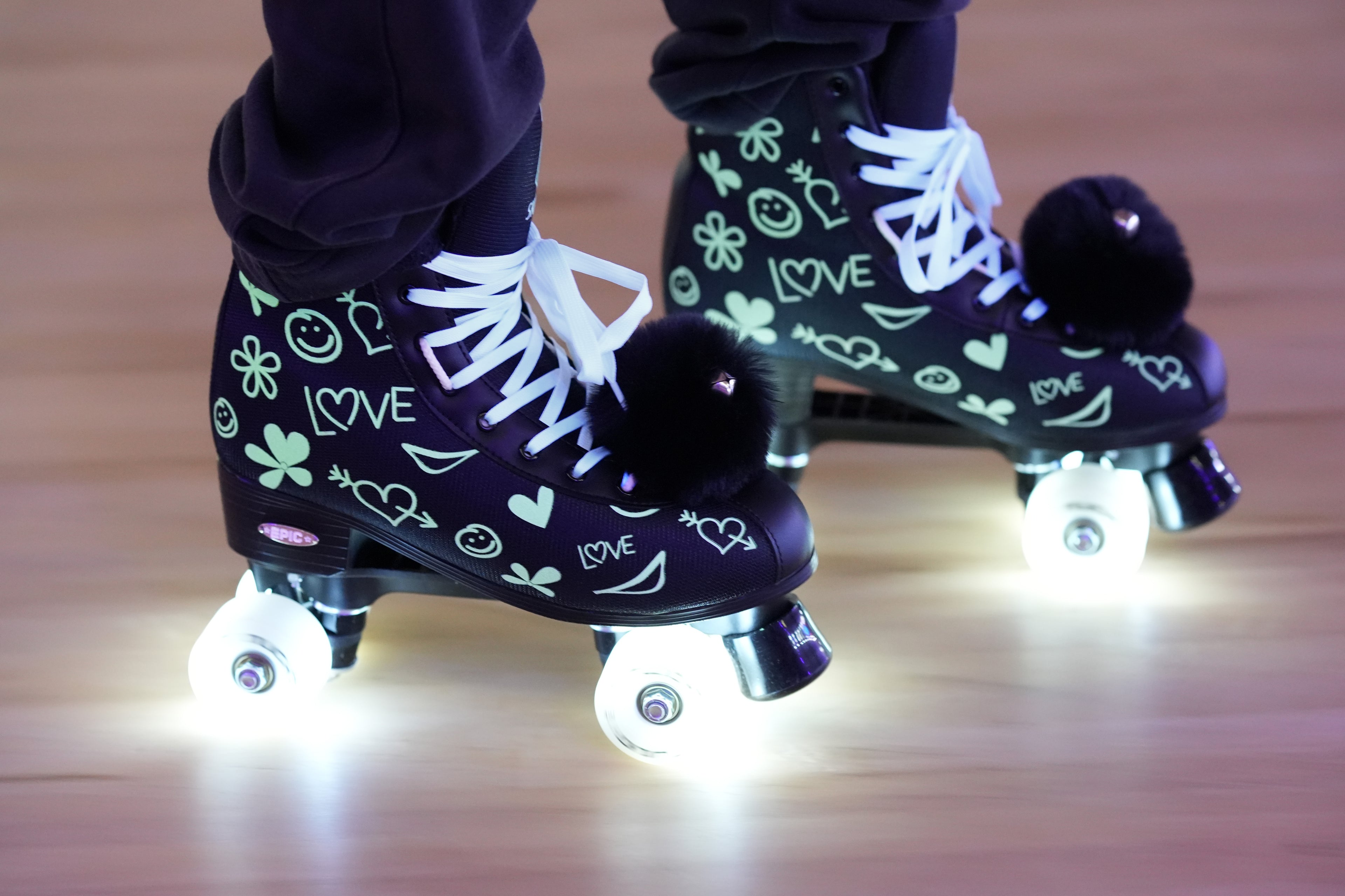 Our line-up of rink and outdoor skates featuring LED light-up wheels will stand out on the hardwood rink or the paved sidewalk.